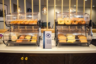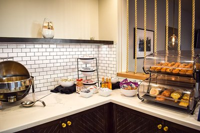 Now serving: Fruit, Cereal & Yoghurt, Pastries, Bagels & Toasts, Cold Meats & Cheese, Fruit Juice, Coffee, Milk & Almond Milk, Tea, Hot Chocolate. Our buffet includes vegan and gluten free options. Served every morning from 7-10AM.