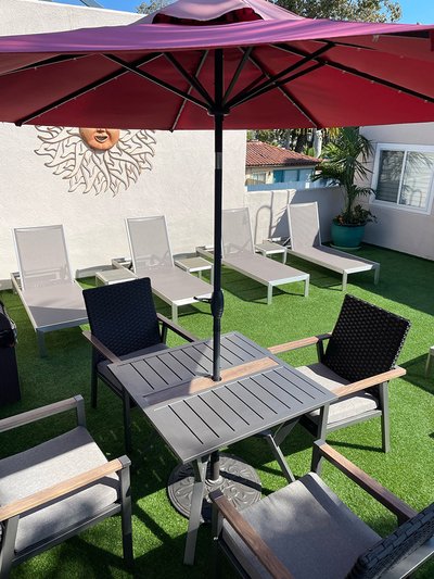 Our outdoor heated pool (typically 85 degrees) is open every day from 9am – 9pm. Towels are provided poolside as well. Upon request, pool hours can be extended as the noise restrictions are adhered to. Enjoy taking a soak after a long day wine tasting, beaching or especially shopping!